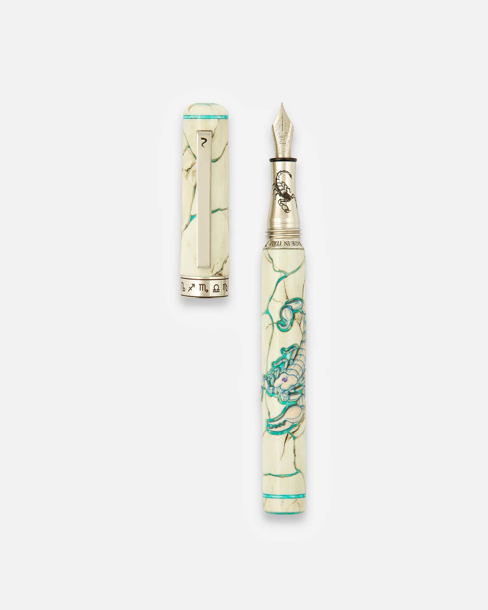 La penna Scorpione elemento di acqua riflette mistero, fascino e passionalità. Ogni pezzo nasce da